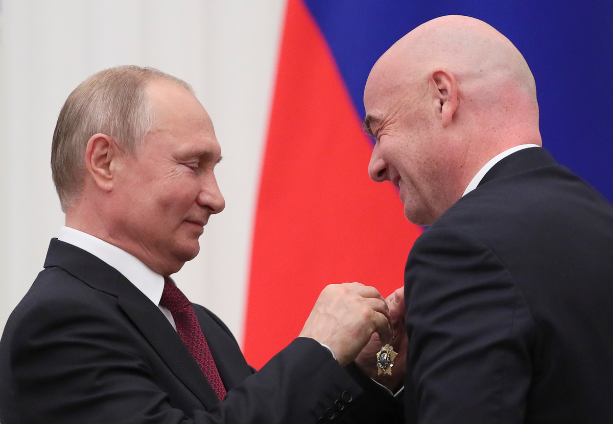 MOSCOW (Reuters) - FIFA President Gianni Infantino thanked Russia on Thursday for hosting the "best World Cup ever" as President Vladimir Putin presented him with a state award for his role in making last year's tournament possible.