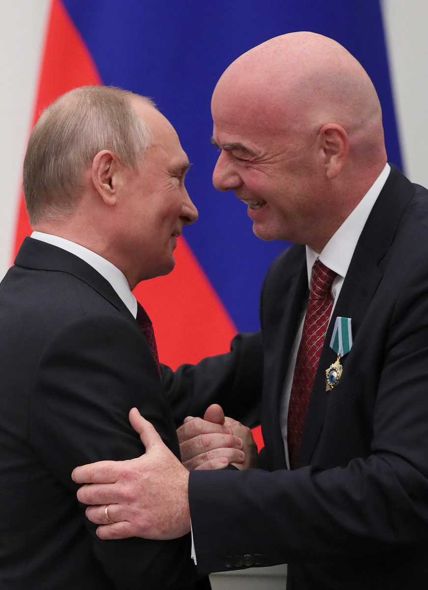 Infantino, with the Order of Friendship medal pinned to his lapel, replied: "You welcomed the world as friends, and the world has created bonds of friendship with Russia that will last forever."