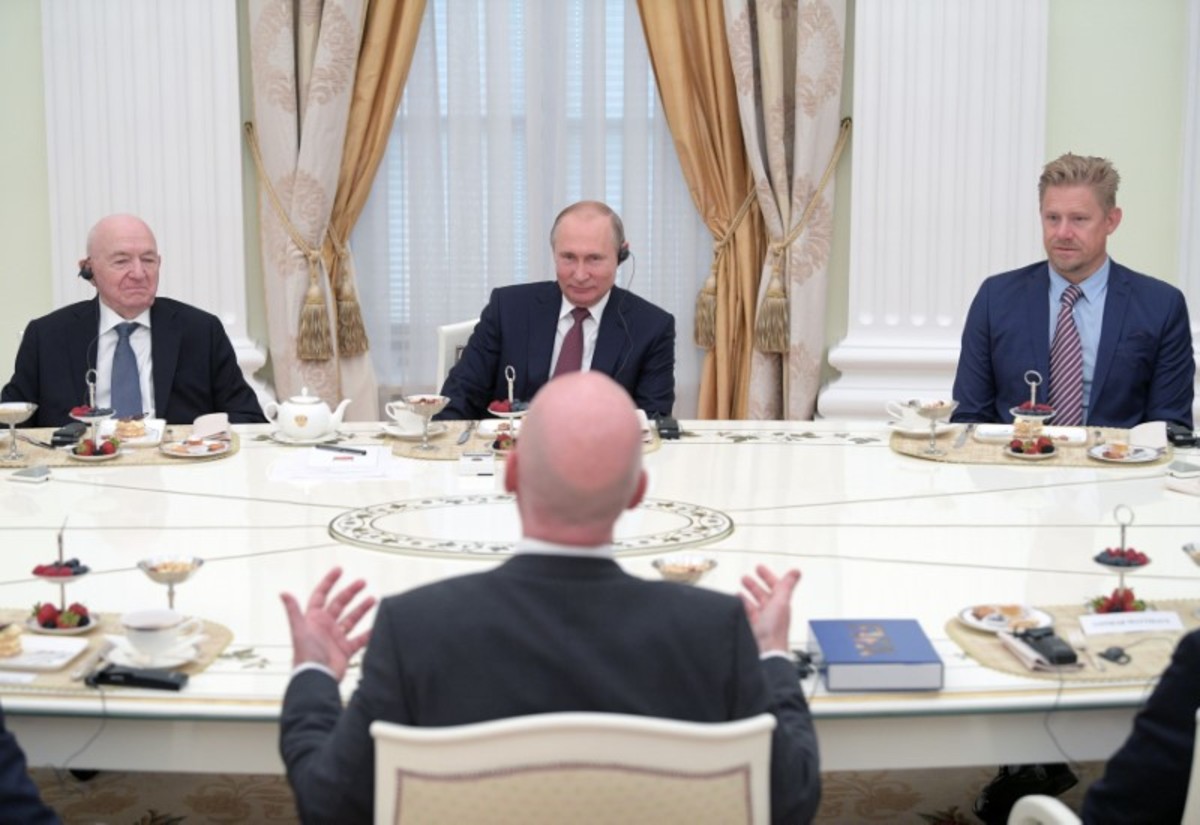 "I was told people, police in the Red Square are smiling," Infantino told Putin, laughing.