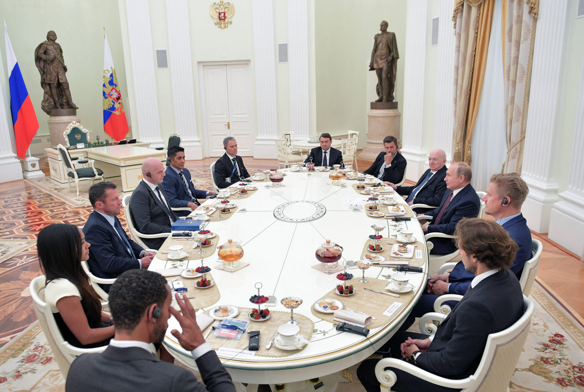 At a meeting with FIFA president Gianni Infantino and former soccer stars at the Kremlin, Putin said the tournament and its coverage on social media had "helped break many stereotypes about Russia".