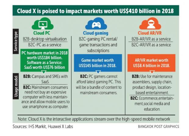 The 5G killer app that Huawei anticipates is Cloud X services, meaning cloud-based interactive computing applications with real-time transmission on smart devices.