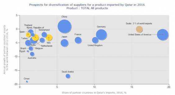 Qatar is a huge import country, especially for perishable goods (mainly food). Qatar mainly imports from the US and Germany, but also Saudi Arabia.