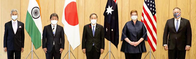 In his first face-to-face diplomatic meetings as prime minister, Yoshihide Suga's one-on-one talks with U.S. Secretary of State Mike Pompeo, as well as with the three foreign ministers from the United States, Australia and India, signaled to observers at home and abroad that the basic diplomatic stance of his administration would be to continue along the track laid down by his predecessor Shinzo Abe and to seek to ensure regional stability by strengthening the Japan-U.S. alliance and promoting the concept of a "free and open Indo-Pacific."