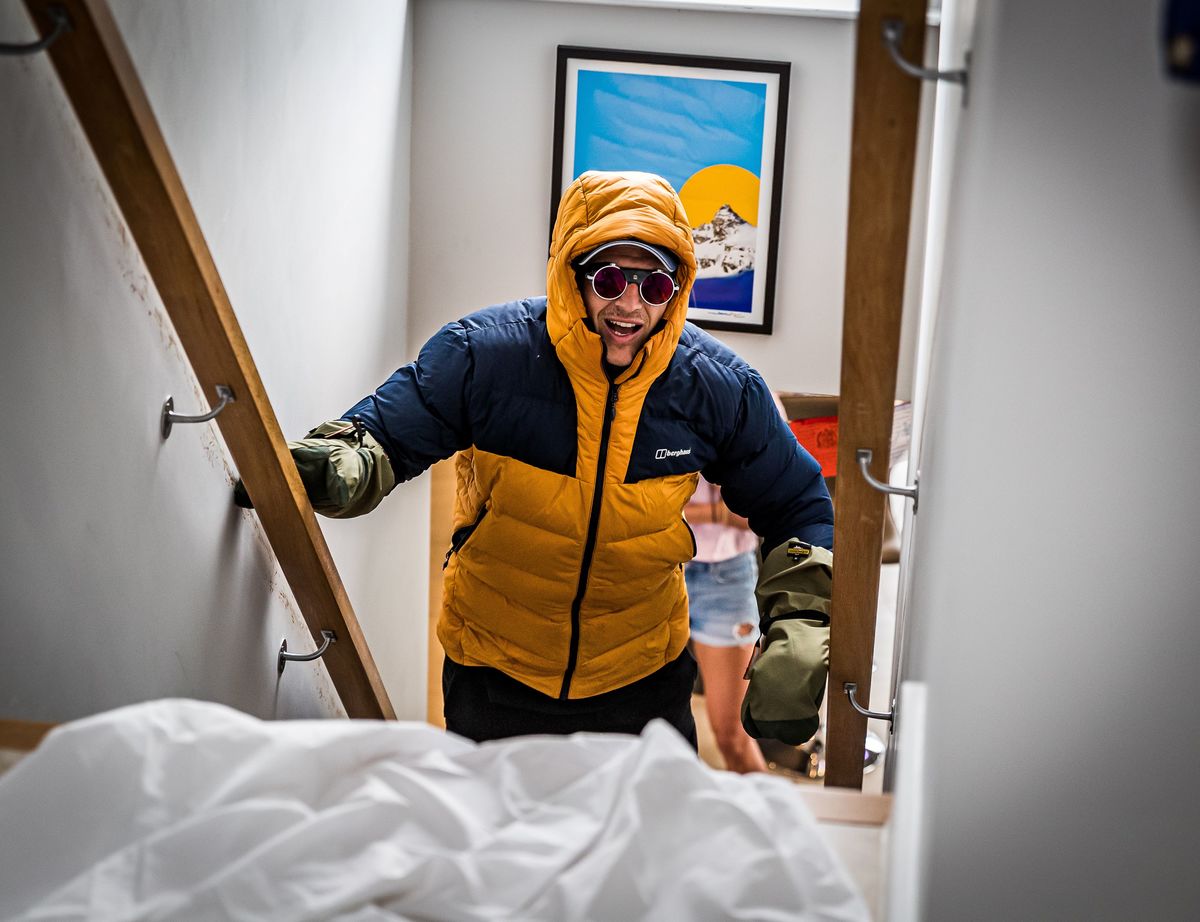 He kept in the spirit of the climb by camping out in his parents' living room in Bath.