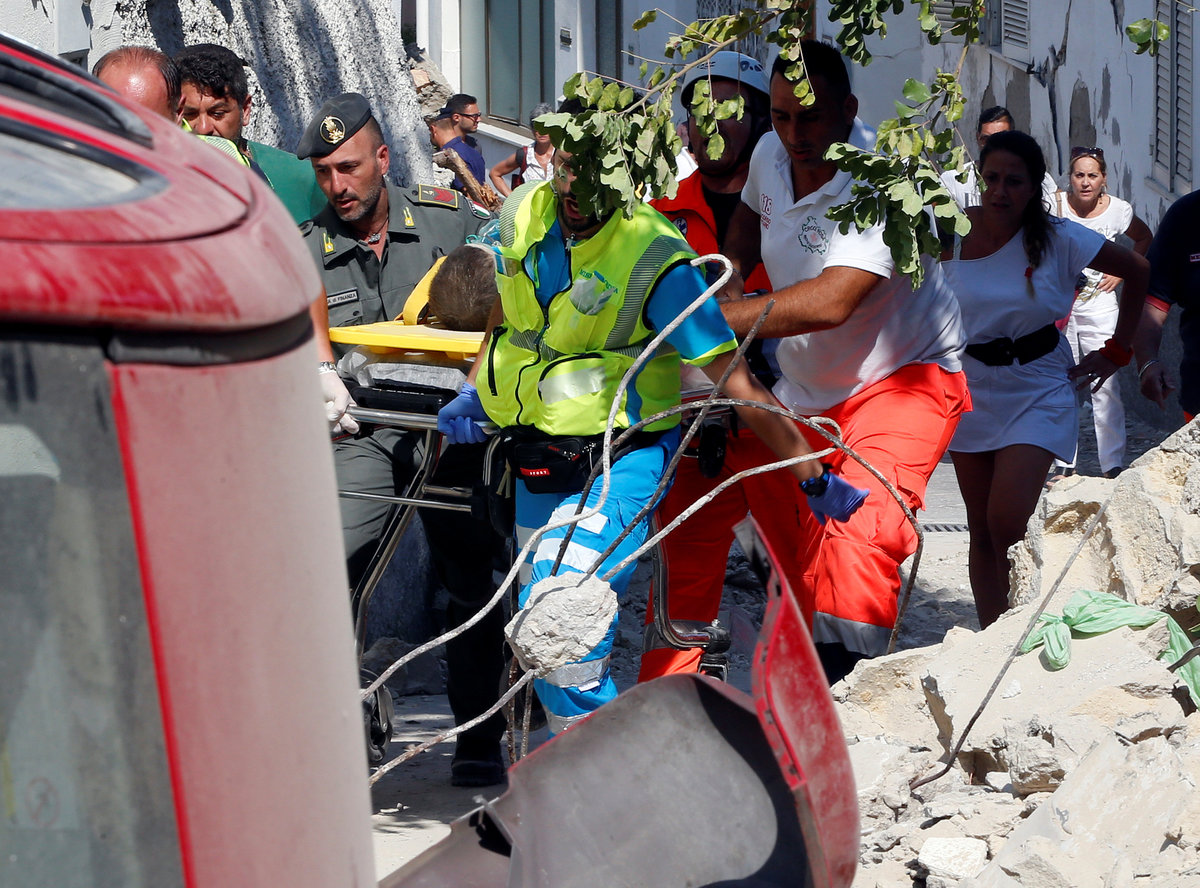 CASAMICCIOLA, Italy (Reuters) - An earthquake struck the tourist-packed Italian holiday island of Ischia on Monday night, killing two people, injuring dozens and trapping three young brothers who survived for up to 16 hours before being rescued.