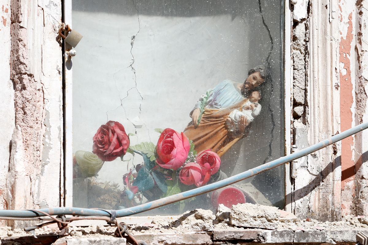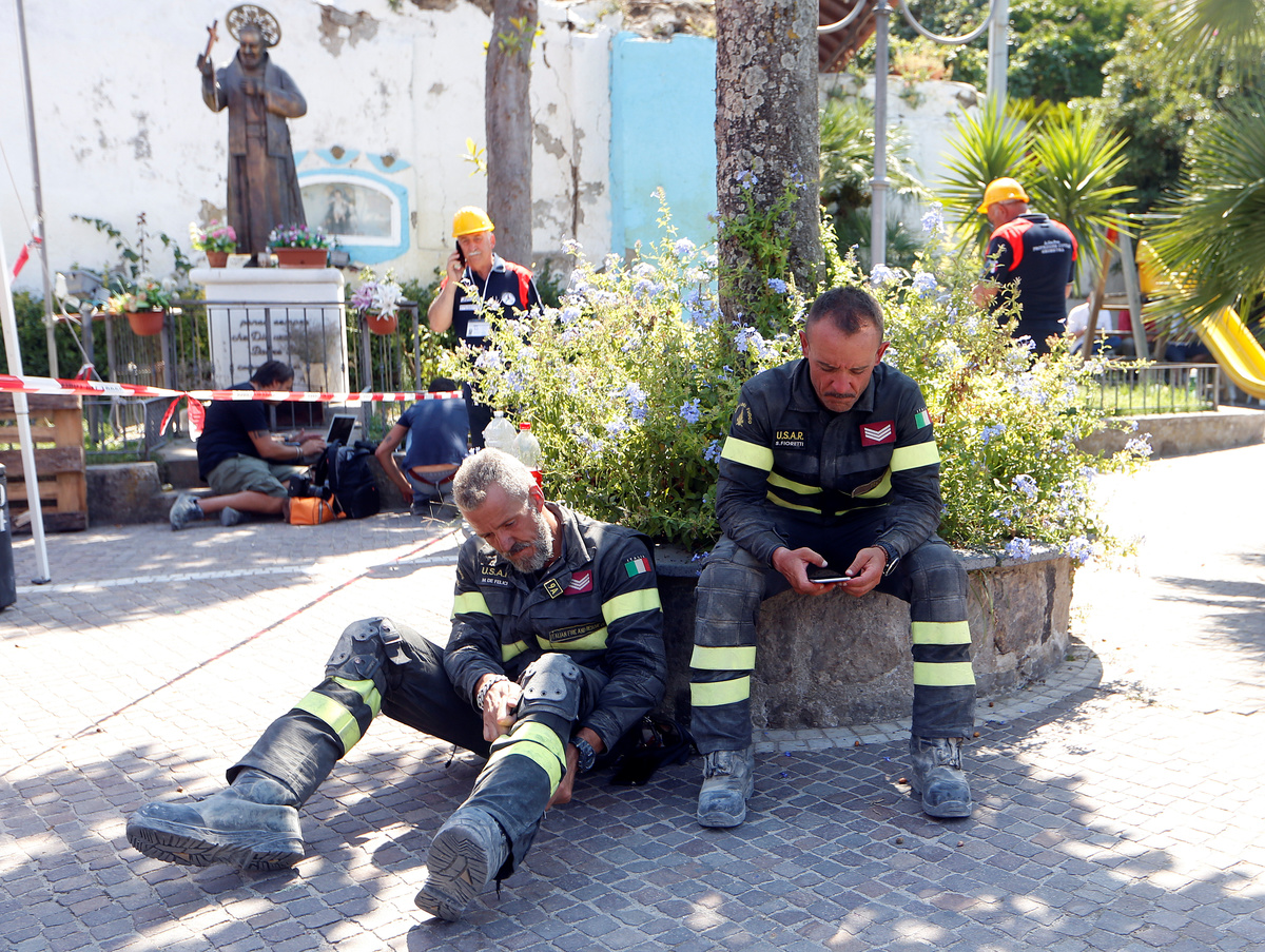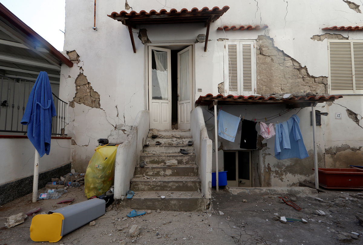 About six buildings in the town of Casamicciola, including a church, collapsed in the quake, which hit at 8:57 p.m. (1857 GMT) on Monday. The walls of one were ripped open, exposing a kitchen with a table still set for dinner.