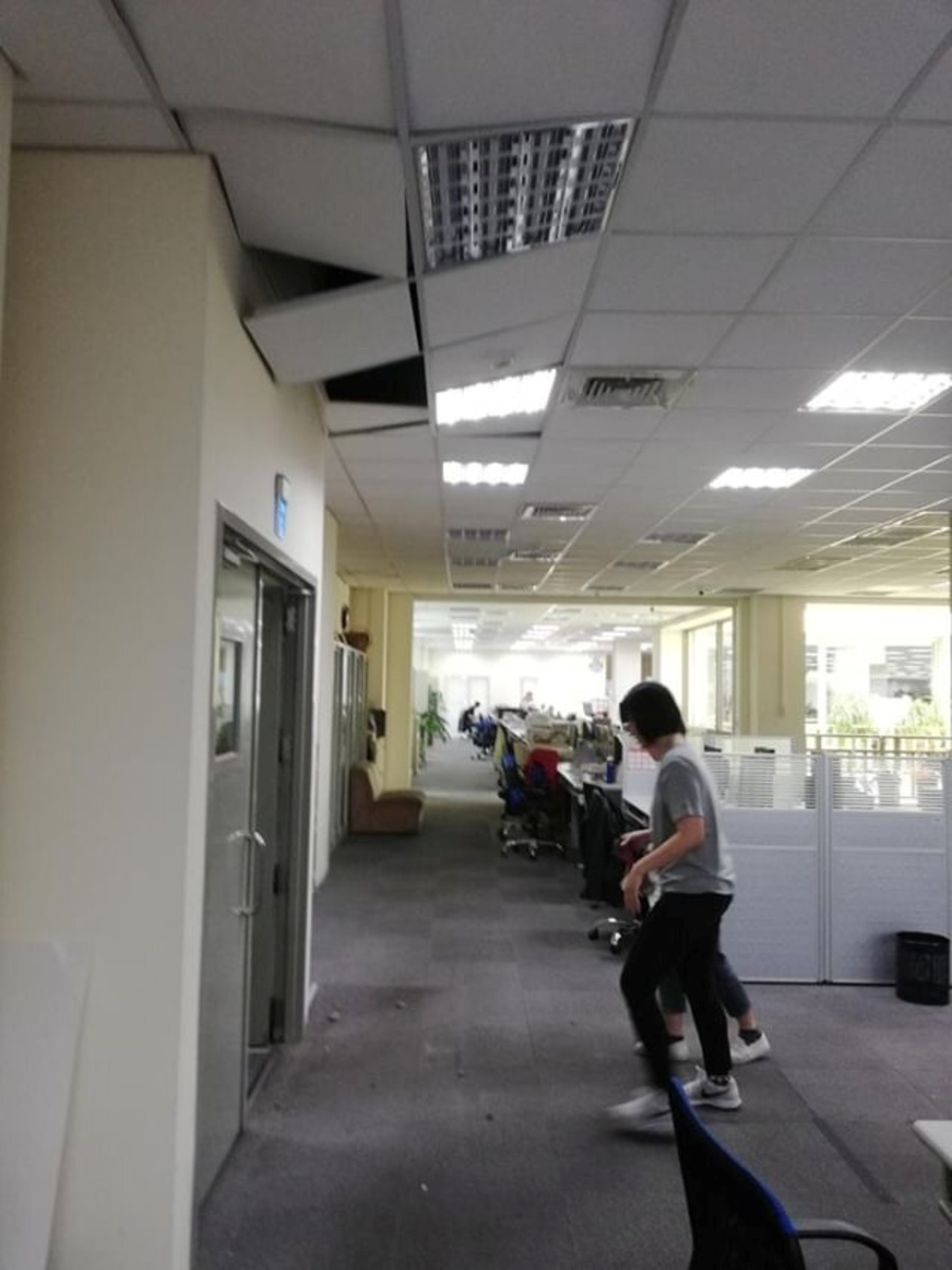 A hundred people were evacuated from a building in Taipei City, while two people were hit by falling rocks in the tourist city of Hualien, the government said.
