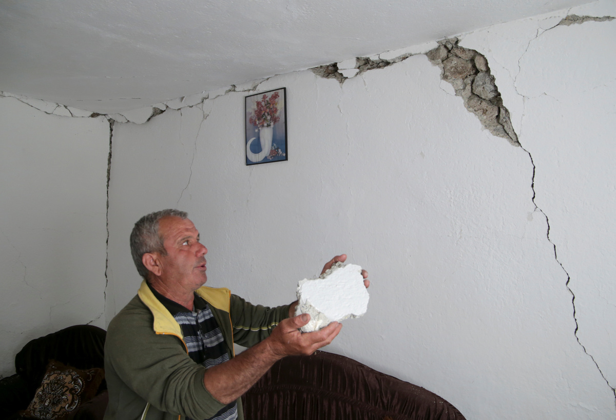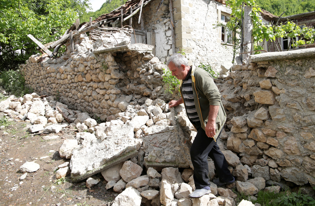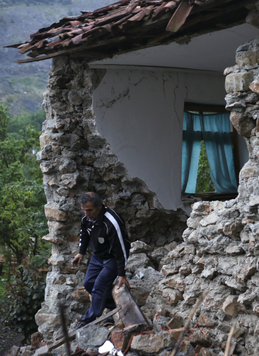 The roof of Petrit's house had collapsed over two rooms. Some 70 houses were damaged in Floq and the nearby village of Dvoran, the Defence Ministry said.