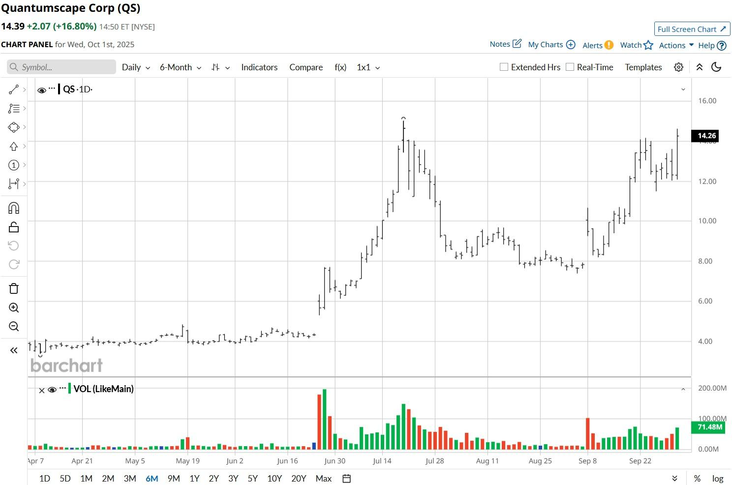 Including today’s surge, QuantumScape stock is up over 300% versus its year-to-date low in April.