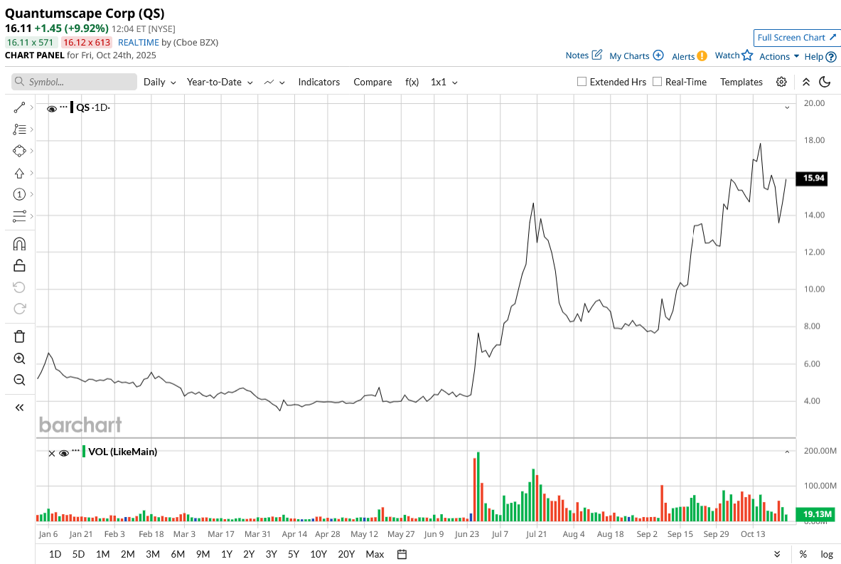 Currently valued at a market cap of $7.7 billion, the QS stock has been on a tear this year, as it is up 208% on a year-to-date (YTD) basis.