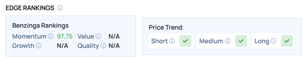 Benzinga Edge Rankings: Reflecting its strong recent performance, the stock has earned a Benzinga Edge Momentum score of 97.75.