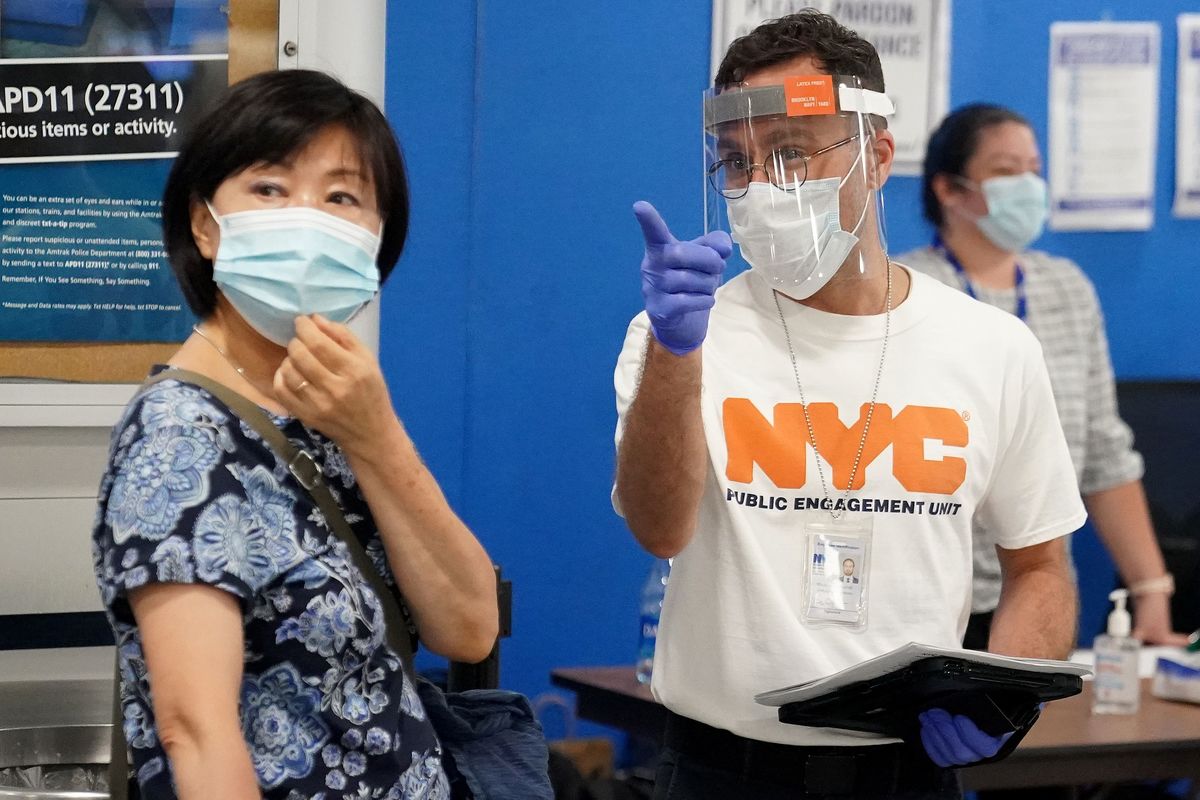 The team, comprised of Mayor Bill de Blasio's public engagement unit and the city's COVID-19 Test & Trace Corps, were running a "checkpoint" starting at Penn Station on Thursday to ensure that visitors from any of the 35 states on New York's travel advisory were aware of the 14-day quarantine mandate.
