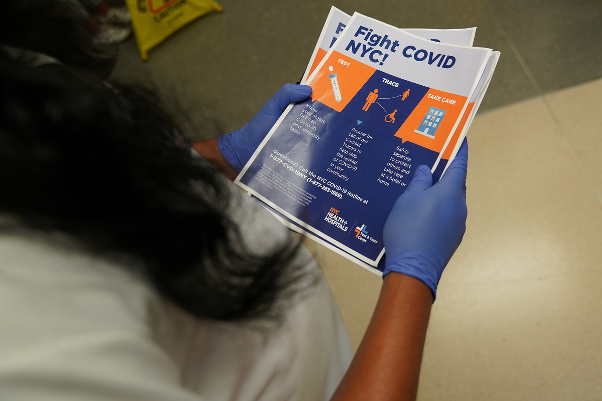 A few dozen travelers got off a train from Miami at New York City's Penn Station on Thursday and were greeted by a team of public health workers and mayoral office staff who handed them informational fliers about the state's new COVID-19 quarantine rules.