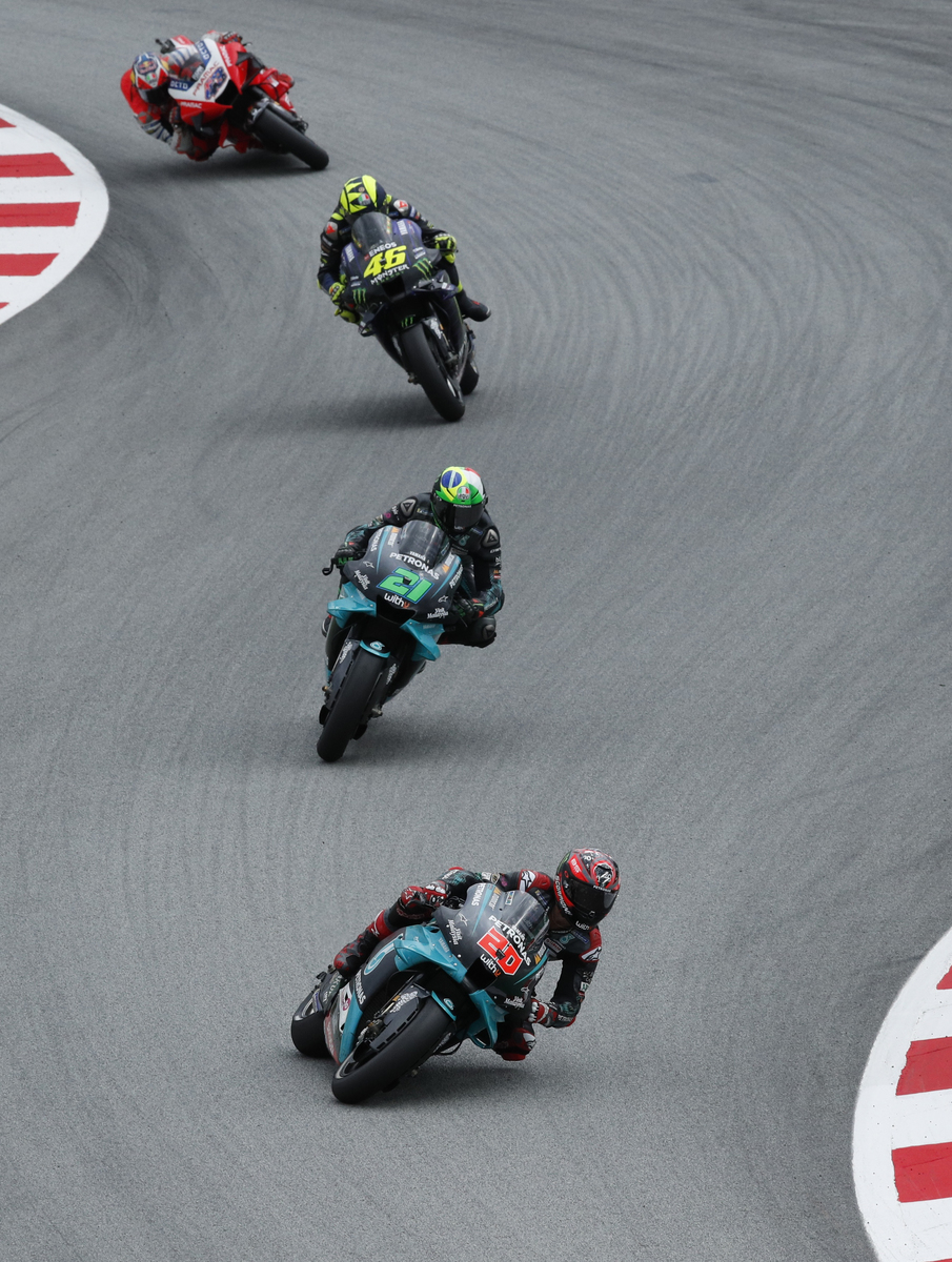 Yamaha looked set for a podium sweep when Morbidelli led his Italian compatriot Valentino Rossi and Quartararo in the early stages before the Frenchman took the lead with a perfect slipstream overtake with 16 laps to go.