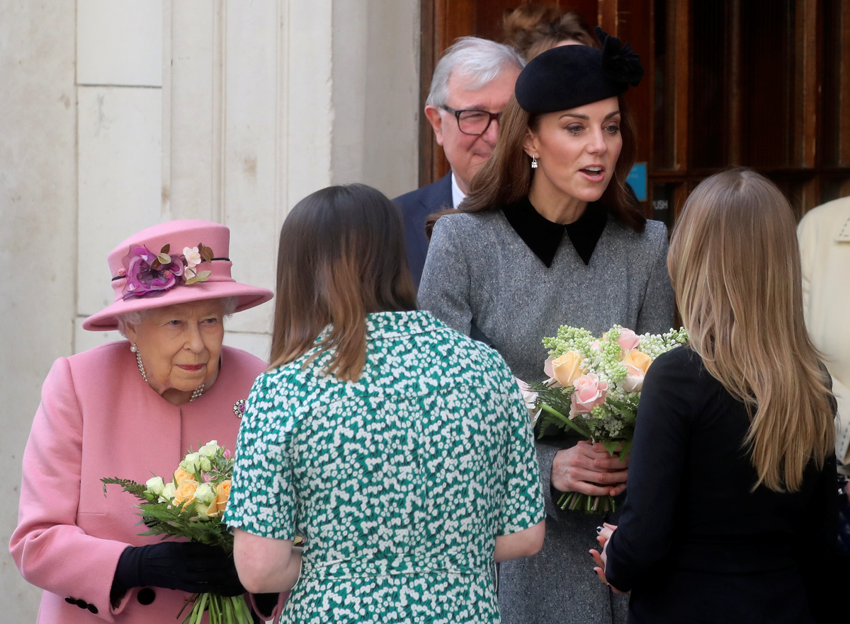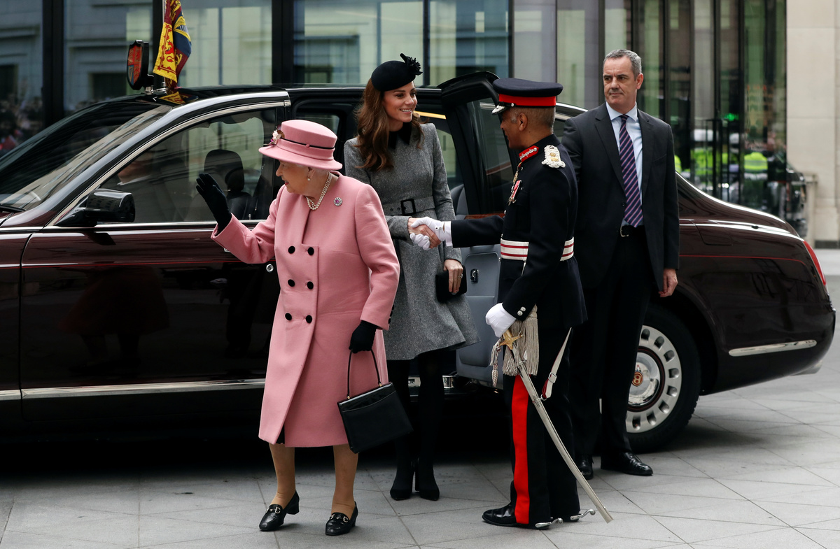 Britain's Queen Elizabeth and Catherine, Duchess of Cambridge receive flowers during a visit to open Bush House at King's College London, in London, Britain March 19, 2019. REUTERS/Simon DawsonBritain's Queen Elizabeth and Catherine, Duchess of Cambridge arrive to open Bush House at King's College London, in London, Britain March 19, 2019. REUTERS/Simon DawsonPeople wait to greet Britain's Queen Elizabeth and Catherine, Duchess of Cambridge, during their arrival to open Bush House at King's College London, in London, Britain March 19, 2019. REUTERS/Simon DawsonFormer British Prime Minister John Major attends the opening of Bush House at King's College London, in London, Britain March 19, 2019. REUTERS/Simon DawsonBritain's Catherine, Duchess of Cambridge receives flowers during a visit to open Bush House at King's College London, in London, Britain March 19, 2019. REUTERS/Simon DawsonBritain's Queen Elizabeth smiles during a visit to open Bush House at King's College London, in London, Britain March 19, 2019. REUTERS/Simon Dawson