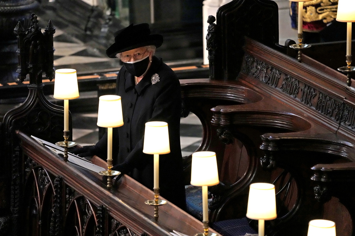 Because of COVID-19 restrictions, the queen sat alone during the sombre service for Philip, who she had described as her "strength and stay".