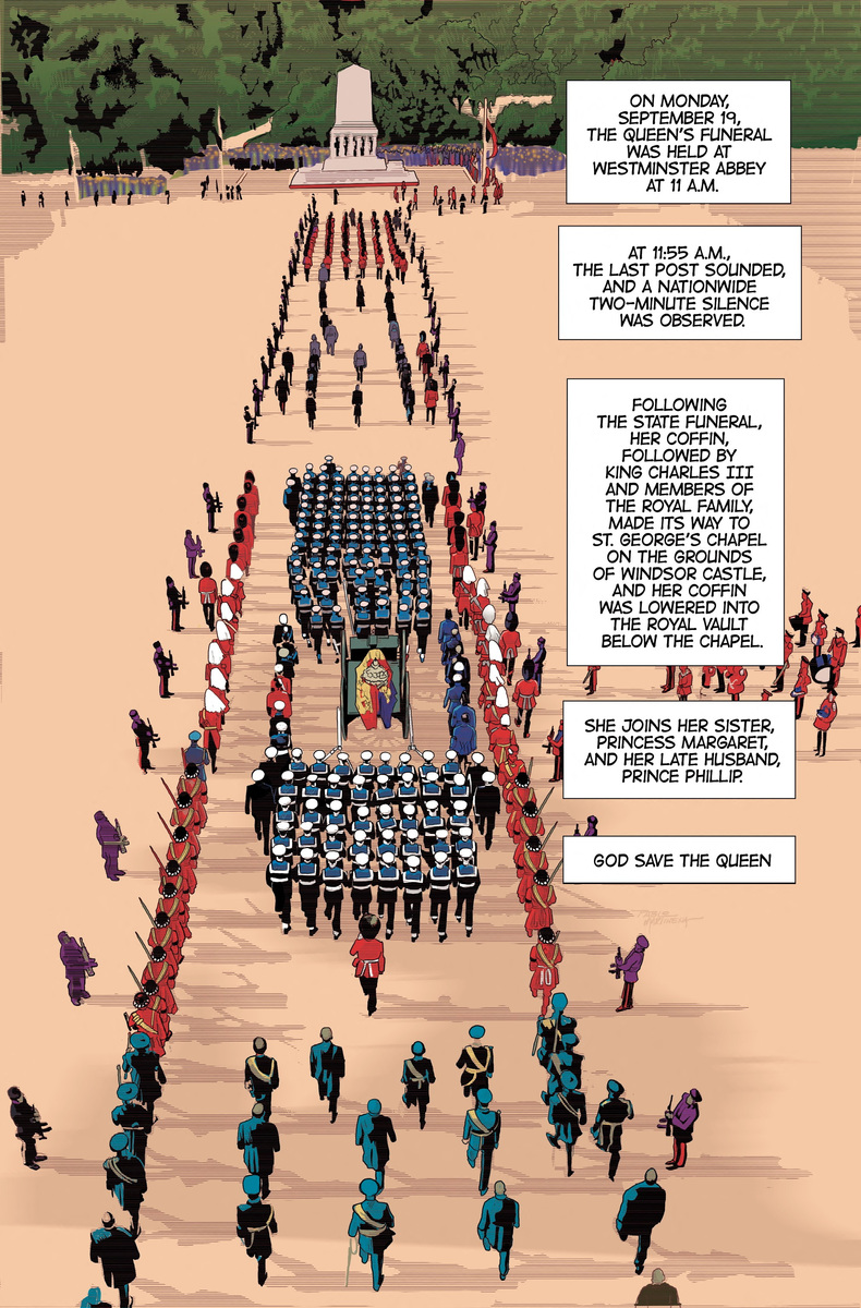 The 30-page glossy, part of the publisher's "Tribute" series, starts with the royal beekeeper notifying the palace hive of the queen's death, a centuries-old tradition rooted in superstition about honey production.