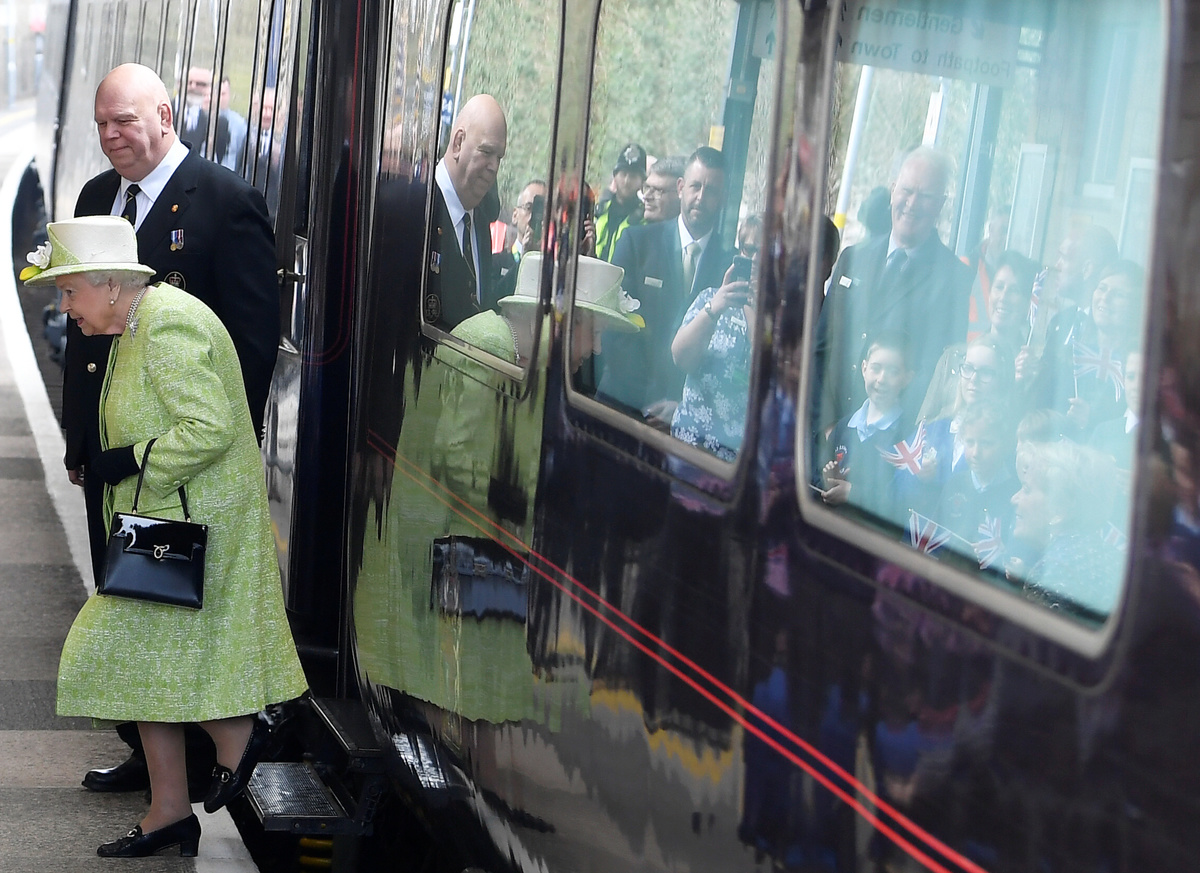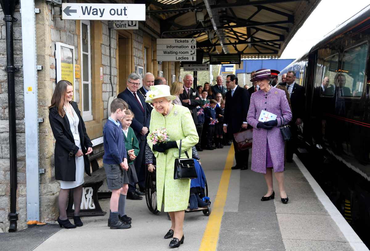 Britain's Queen Elizabeth arrives at Castle Cary Station, in Somerset, Britain March 28, 2019. REUTERS/Toby Melville