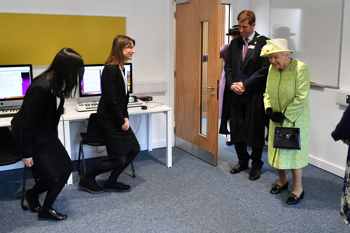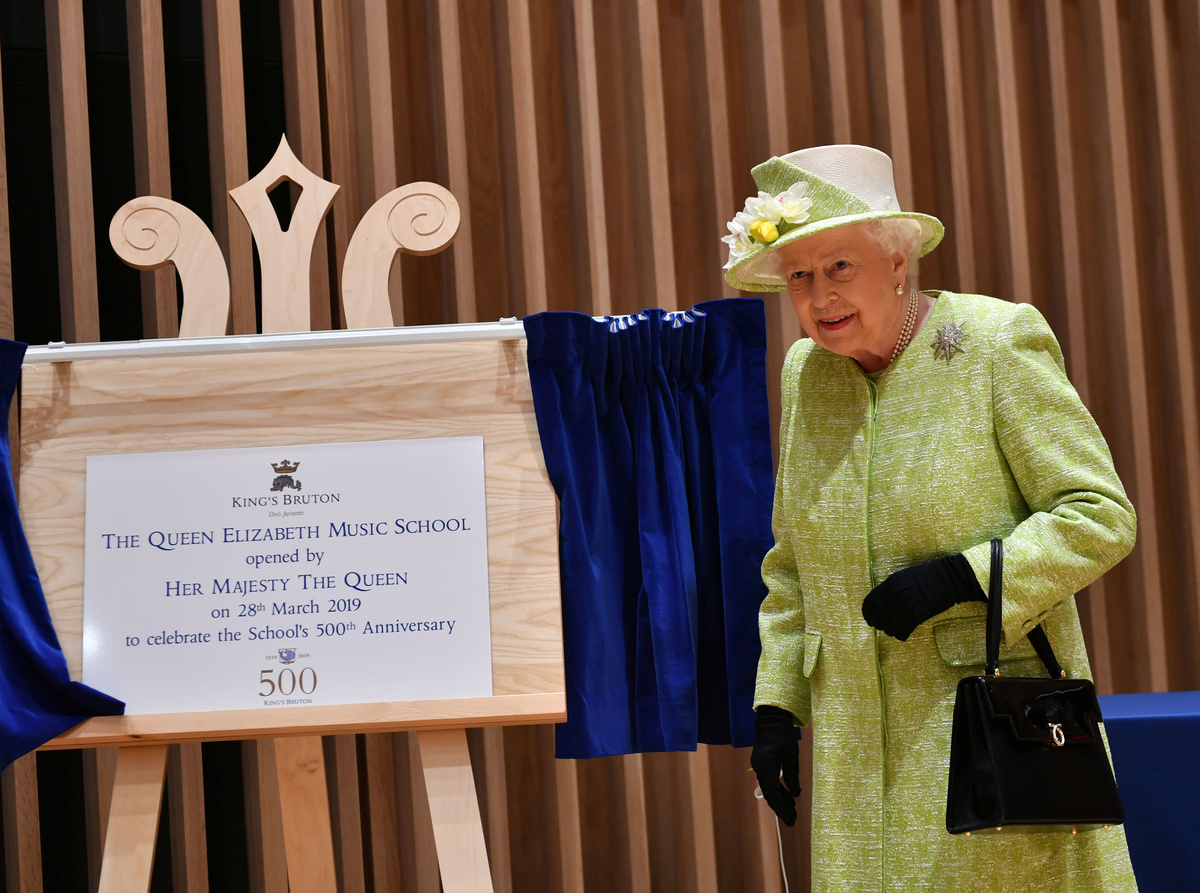 Later, she was visiting King's Bruton School, which was founded in 1519. To mark 500 years of the school at Bruton in the county of Somerset, she opened its new music center.