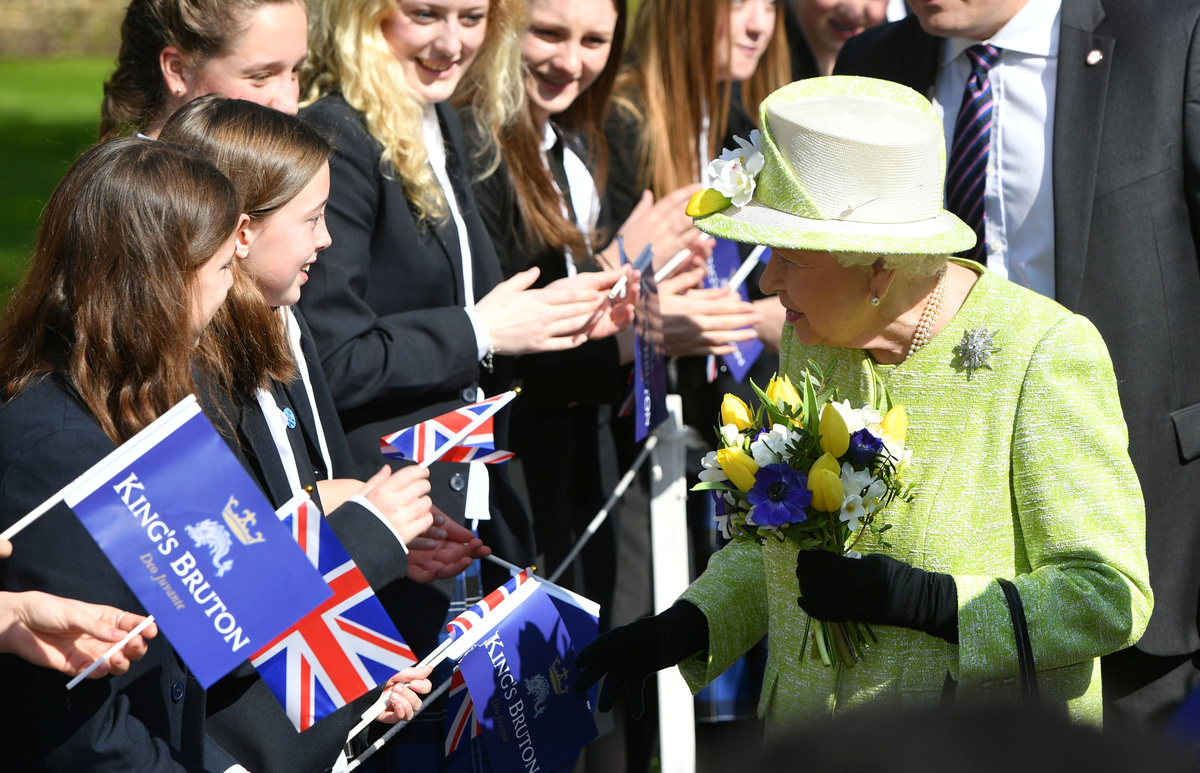 Queen Elizabeth II meets pupils during a visit to King's Bruton School where she will mark the School's 500th anniversary and open the new Music Centre, in Bruton, Somerset, Britain March 28, 2019. Ben Birchall/Pool via REUTERSBritain's Queen Elizabeth II greets staff accompanied by trainer Paul Nicholls during a visit to Manor Farm Stables in Ditcheat, Britain March 28, 2019. Matt Keeble/Pool via REUTERSBritain's Queen Elizabeth II feeds a carrot to a horse during a visit to Manor Farm Stables in Ditcheat, Britain March 28, 2019. Matt Keeble/Pool via REUTERSBritain's Queen Elizabeth is seen smiling as she leaves Hauser & Wirth Somerset, in Bruton, Somerset, Britain March 28, 2019. REUTERS/Toby Melville/PoolBritain's Queen Elizabeth arrives at Castle Cary Station, in Somerset, Britain March 28, 2019. REUTERS/Toby MelvilleQueen Elizabeth II during a visit to King's Bruton School where she will mark the School's 500th anniversary and open the new Music Centre, in Bruton, Somerset, Britain March 28, 2019. Ben Birchall/Pool via REUTERSBritain's Queen Elizabeth II with horse Politologue and trainer Paul Nicholls during a visit to Manor Farm Stables in Ditcheat, Britain March 28, 2019. Matt Keeble/Pool via REUTERSQueen Elizabeth II visits the King's Bruton School where she will mark the School's 500th anniversary and open the new Music Centre, in Bruton, Somerset, Britain March 28, 2019. Ben Birchall/Pool via REUTERSQueen Elizabeth II meets music students during a visit to King's Bruton School where she will mark the School's 500th anniversary and open the new Music Centre, in Bruton, Somerset, Britain March 28, 2019. Ben Birchall/Pool via REUTERSQueen Elizabeth II meets pupils during a visit to King's Bruton School where she will mark the School's 500th anniversary and open the new Music Centre, in Bruton, Somerset, Britain March 28, 2019. Ben Birchall/Pool via REUTERSQueen Elizabeth II unveils a plaque celebrating the school's 500th anniversary and opening their new music centre during a visit to King's Bruton School in Bruton, Somerset, Britain March 28, 2019. Ben Birchall/Pool via REUTERSBritain's Queen Elizabeth arrives at Castle Cary Station, in Somerset, Britain March 28, 2019. REUTERS/Toby Melville