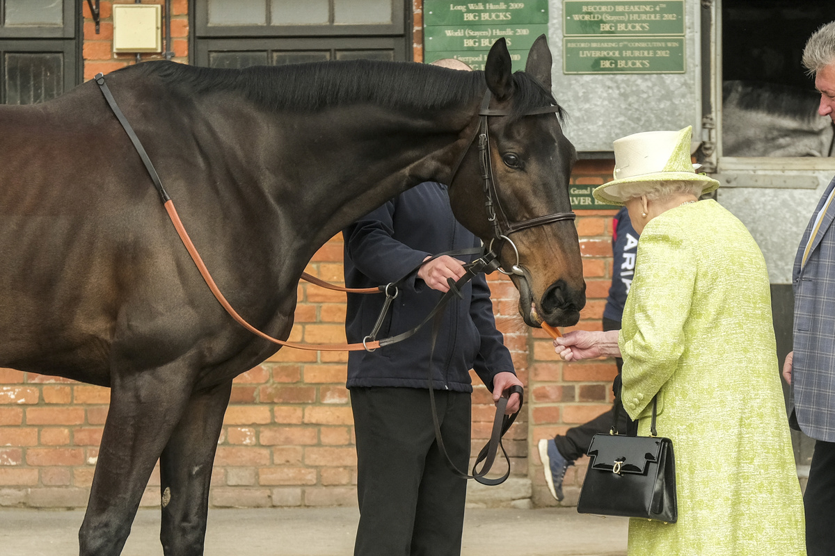 Six of his horses were paraded before the 92-year-old monarch, who fed them carrots.