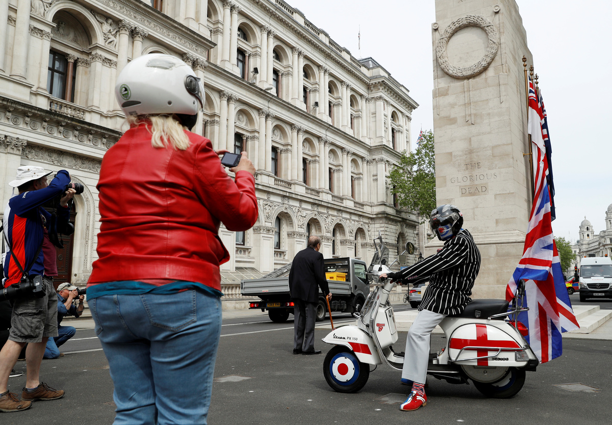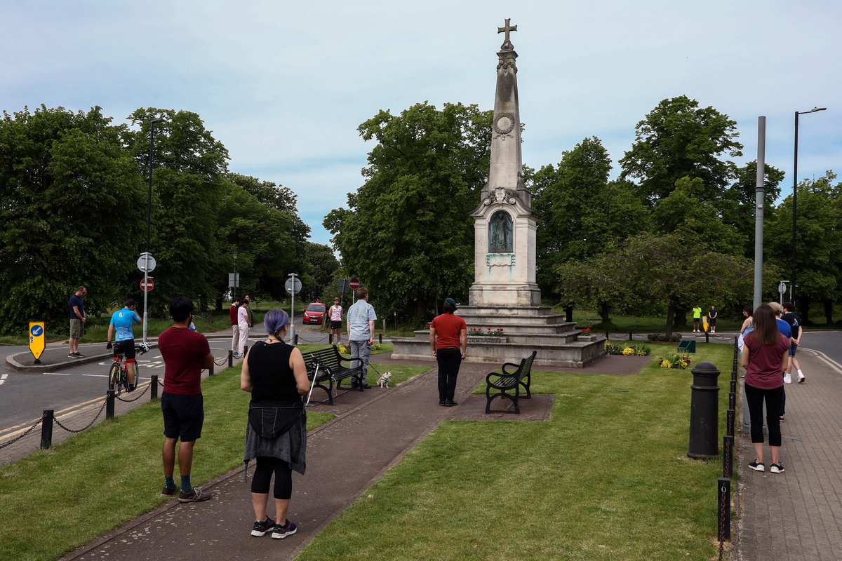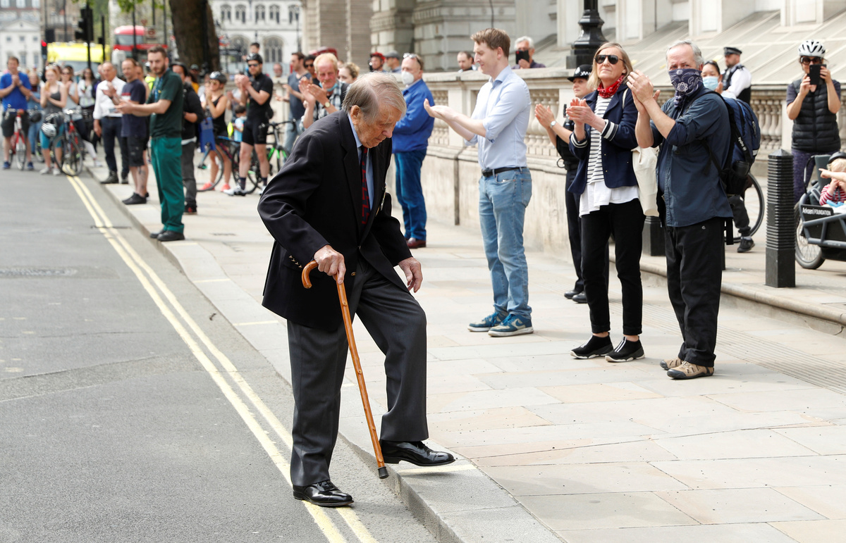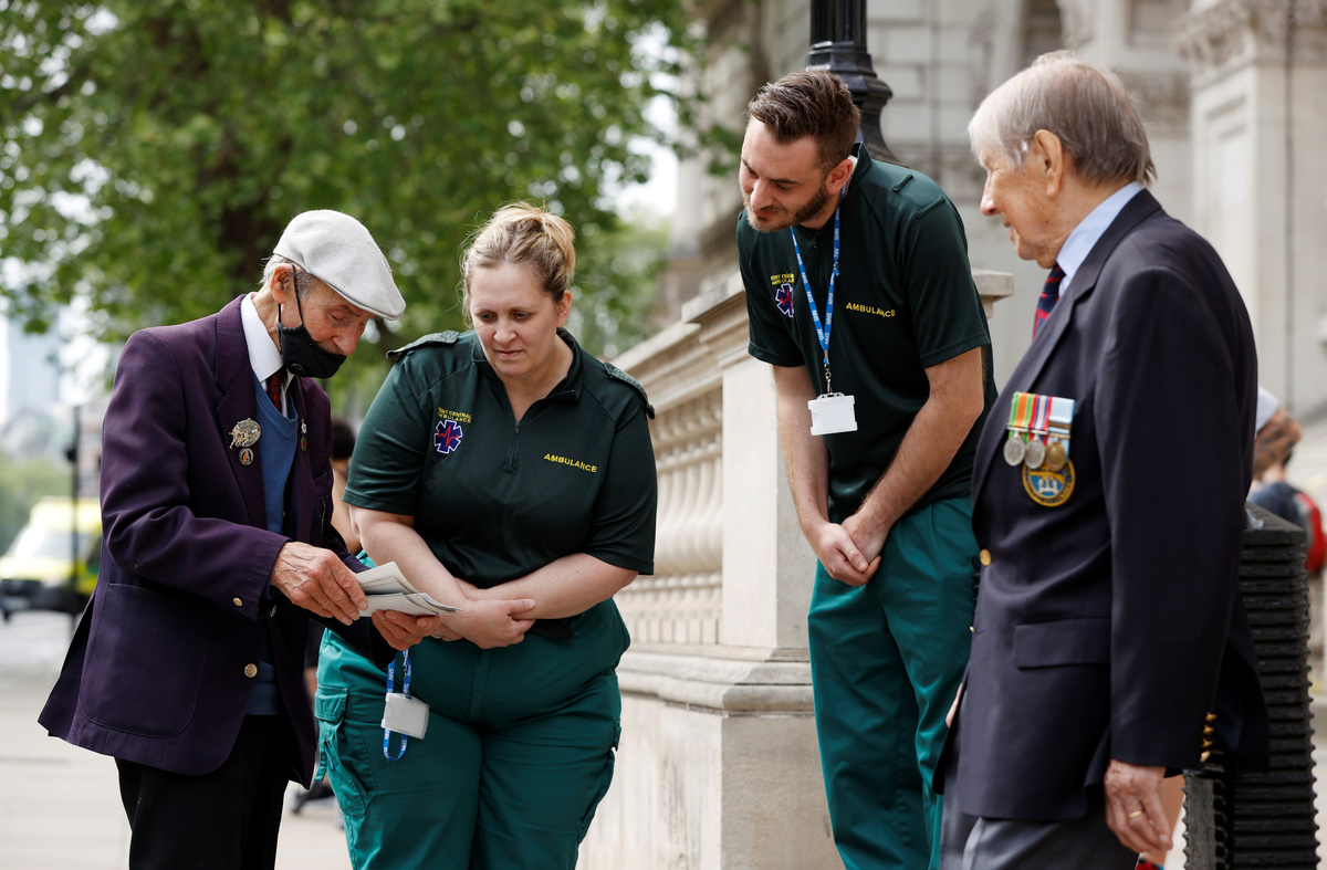 Phil Middleton selects war time music outside their home in Capel on the 75th Anniversary of VE Day, Capel, Britain, May 8, 2020. REUTERS/Toby MelvillePhil and Joy Middleton dance outside their home in Capel on the 75th Anniversary of VE Day, Capel, Britain, May 8, 2020. REUTERS/Toby MelvilleA house is seen with a flag in Streatham to commemorate the 75th Anniversary of VE Day, London, Britain, May 8, 2020. REUTERS/Hannah McKaySinger Debbie Watt representing Care Entertainment sings 1940's songs on the 75th Anniversary of VE Day. She maintains social distancing while entertaining residents and staff in the garden of Ashgreen House Residential and Nursing Home in Woolwich. It is her first performance following the outbreak of the coronavirus disease (COVID-19), London, Britain, May 8, 2020. REUTERS/Steven WattBen and Jack clean classic military vehicles in Capel on the 75th Anniversary of VE Day, Capel, Britain, May 8, 2020. REUTERS/Toby MelvilleBritain's Prince of Wales and the Duchess of Cornwall (known as the Duke and Duchess of Rothesay when in Scotland) arrive to observe a two-minute silence to mark the 75th anniversary of VE Day at the Balmoral War Memorial, Scotland, Britain May 8, 2020. Amy Muir/Pool via REUTERSNewcastle-under-Lyme town crier Gordon Brayford is seen at a street party on the 75th Anniversary of VE Day, Newcastle-under-Lyme, Britain, May 8, 2020. REUTERS/Carl RecineBen and Jack clean classic military vehicles in Capel on the 75th Anniversary of VE Day, Capel, Britain, May 8, 2020. REUTERS/Toby MelvilleA veteran at The Cenotaph in Westminster during a two minute silence on the 75th Anniversary of VE Day in London, Britain, May 8, 2020. REUTERS/John SibleyThe British Royal Air Force Red Arrows conduct a fly past over London to commemorate the 75th Anniversary of Victory in Europe (VE75) in Britain May 8, 2020. UK Ministry of Defence/Crown Copyright 2020/Handout via REUTERS The Royal Air Force Aerobatic Team Red Arrows fly past the City of London on the 75th Anniversary of VE Day in London, Britain, May 8, 2020. REUTERS/Toby MelvilleThe Royal Air Force Aerobatic Team Red Arrows fly past Buckingham Palace on the 75th Anniversary of VE Day in London, Britain, May 8, 2020. REUTERS/John SibleySenior officers and soldiers of the Household Division before a two minute silence to commemorate the 75th Anniversary of VE Day at Horse Guards, London, Britain, May 8, 2020. REUTERS/Hannah McKayPeople observe a two minute silence to commemorate the 75th Anniversary of VE Day in St James's Park, London, Britain, May 8, 2020. REUTERS/Hannah McKayPeople stand for a two-minute silence at Wimbledon War Memorial to commemorate the 75th Anniversary of VE Day, in London, Britain, May 8, 2020. REUTERS/Kevin CoombsPeople walk past Wimbledon Windmill decorated with flags on the 75th Anniversary of VE Day, in London, Britain, May 8, 2020. REUTERS/Kevin CoombsThe Royal Air Force Aerobatic Team Red Arrows fly past Buckingham Palace on the 75th Anniversary of VE Day in London, Britain, May 8, 2020. REUTERS/John SibleyParamedics and a firefighter during a two minute silence to commemorate the 75th Anniversary of VE Day in St James's Park, London, Britain, May 8, 2020. REUTERS/Hannah McKayA veteran is applauded at The Cenotaph in Westminster during a two minute silence on the 75th Anniversary of VE Day in London, Britain, May 8, 2020. REUTERS/John SibleyPeople are seen riding a bike infront of The Cenotaph on the 75th Anniversary of VE Day in London, Britain, May 8, 2020. REUTERS/John SibleyA veteran is applauded at The Cenotaph in Westminster during a two minute silence on the 75th Anniversary of VE Day in London, Britain, May 8, 2020. REUTERS/John SibleySenior officers and soldiers of the Household Division salute before a two minute silence to commemorate the 75th Anniversary of VE Day at Horse Guards, London, Britain, May 8, 2020. REUTERS/Hannah McKayPeople on a scooter with the Union Jack flag in front of Guards Memorial in St James's Park after a two minute silence to commemorate the 75th Anniversary of VE Day, London, Britain, May 8, 2020. REUTERS/Hannah McKayThe British Royal Air Force Red Arrows conduct a fly past over the Runnymede Air Forces Memorial to commemorate the 75th Anniversary of Victory in Europe (VE75) in Britain May 8, 2020. UK Ministry of Defence/Crown Copyright 2020/Handout via REUTERS Residents of Hale during a two minute silence on the 75th Anniversary of VE Day in Hale, Britain, May 8, 2020. REUTERS/Phil NobleVeterans and ambulance workers at The Cenotaph in Westminster on the 75th Anniversary of VE Day in London, Britain, May 8, 2020. REUTERS/John SibleyA person poses for a picture infront of The Cenotaph on the 75th Anniversary of VE Day in London, Britain, May 8, 2020. REUTERS/John SibleyGeneral view of a painting to commemorate the 75th anniversary of VE Day painted by staff of Barnton Primary School, following the outbreak of the coronavirus disease (COVID-19), Barnton, Britain, May 7, 2020. REUTERS/Molly Darlington