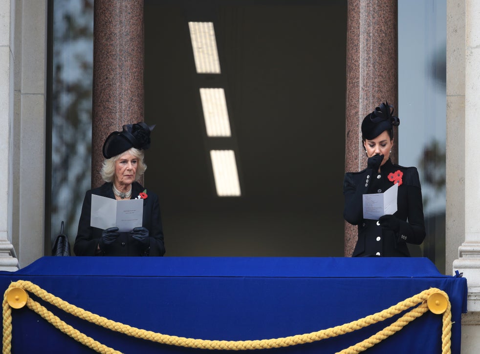 Kate Middleton and Camilla Parker-Bowles also watched from a nearby balcony while sitting two metres apart from one another.