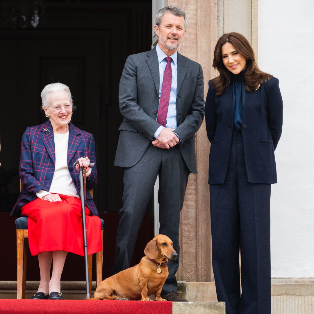 Queen Margrethe marked her 86th birthday on April 16, and celebrated with her son, King Frederik, and daughter-in-law, Queen Mary. They enjoyed a concert from the Royal Life Guards Music Corps outside Fredensborg Palace to mark the occasion. Queen Margrethe’s dog, Tilia, a dachshund, trotted up the steps and received a warm welcome from her owner. When Queen Mary bent down to pet her mother-in-law’s dog, she received a firm correction.