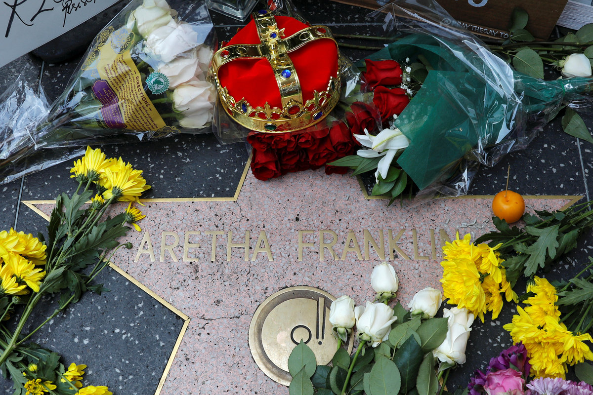A crown and flowers were placed on Aretha Franklin's star on Hollywood Boulevard in Los Angeles, California, U.S., August 16, 2018. REUTERS/Mike Blake