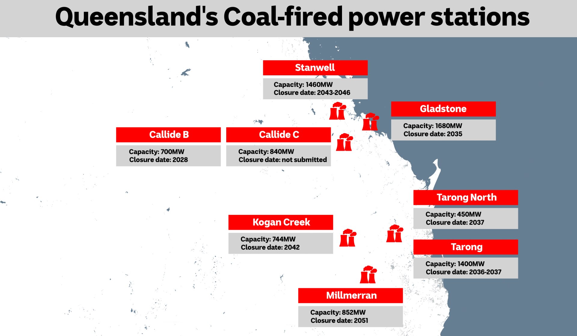 Queensland's eight coal-fired power stations are dotted across the southern corner of the state, from Rockhampton to west of Toowoomba.