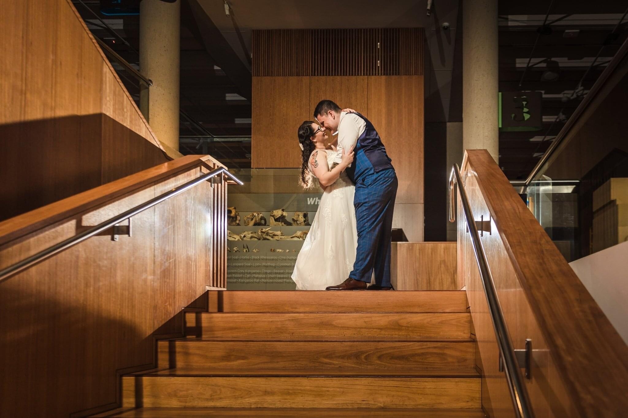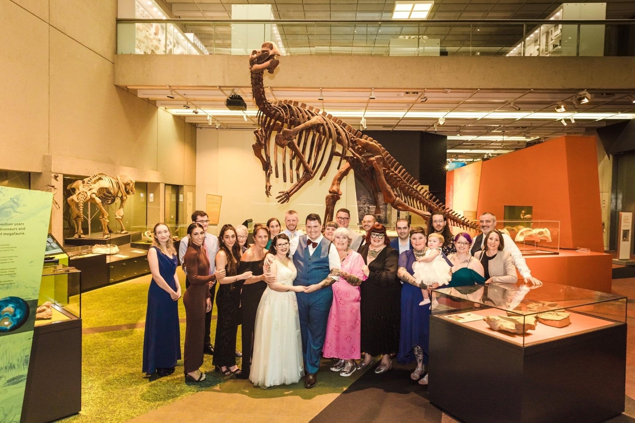 Rupert Say and Christina Chiotakis recently tied the knot among 245-million-year-old fossils and giant dinosaur skeletons at the Queensland Museum after first meeting there in 2015.