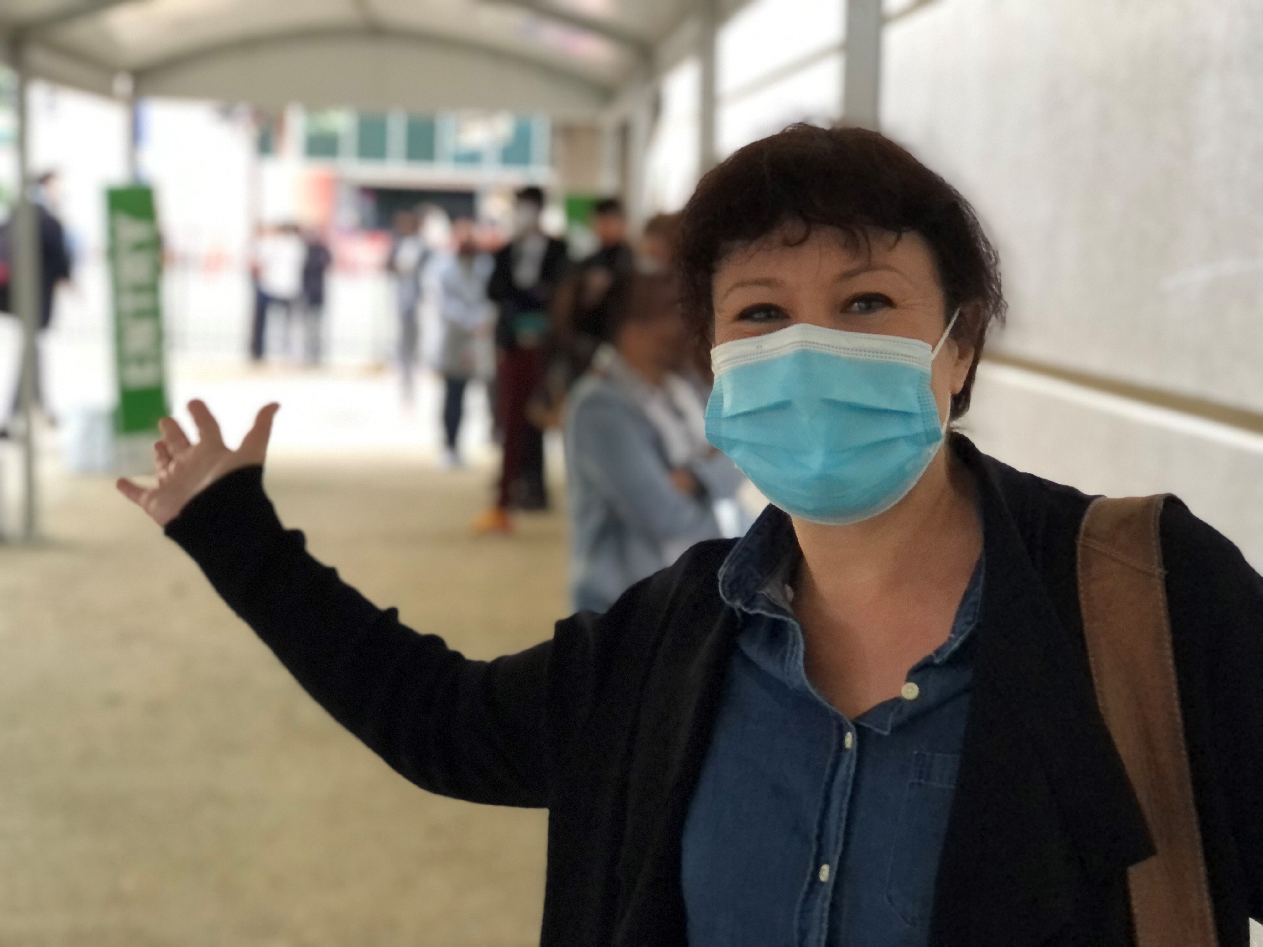 Kelly Bradtke was the first in line to get a vaccination at the hub and said she had been waiting eagerly for the chance.