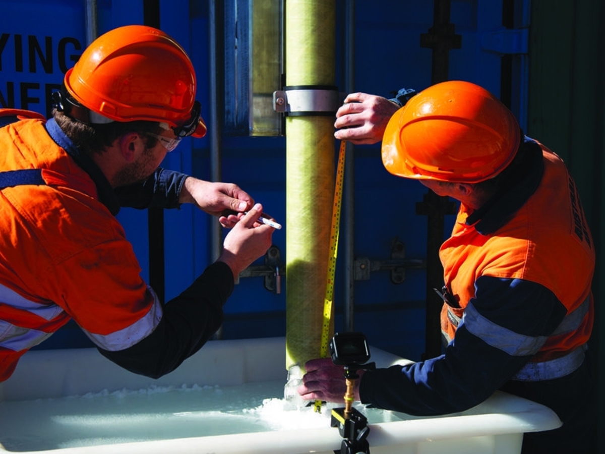 The drill has been tested at AAD headquarters south of Hobart using a sizeable frozen cube painstakingly built up in layers to mirror ice in Antarctica.