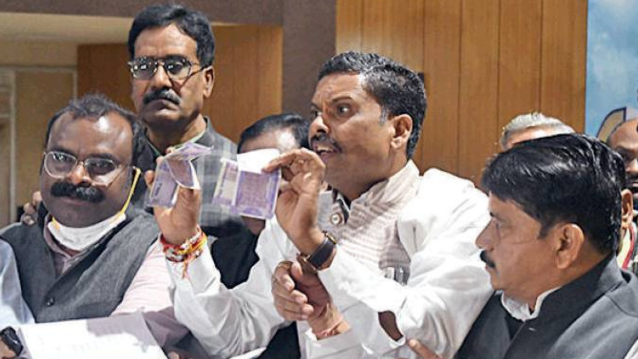 Minister for legislative affairs Narottam Mishra argued, “When the budget was being discussed, then he was sitting quietly with jaggery in his mouth. And now he is disrupting the House.”