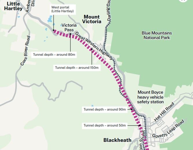 The design would see engineers dig about 100m under Mt Victoria and 30m under Blackheath.
