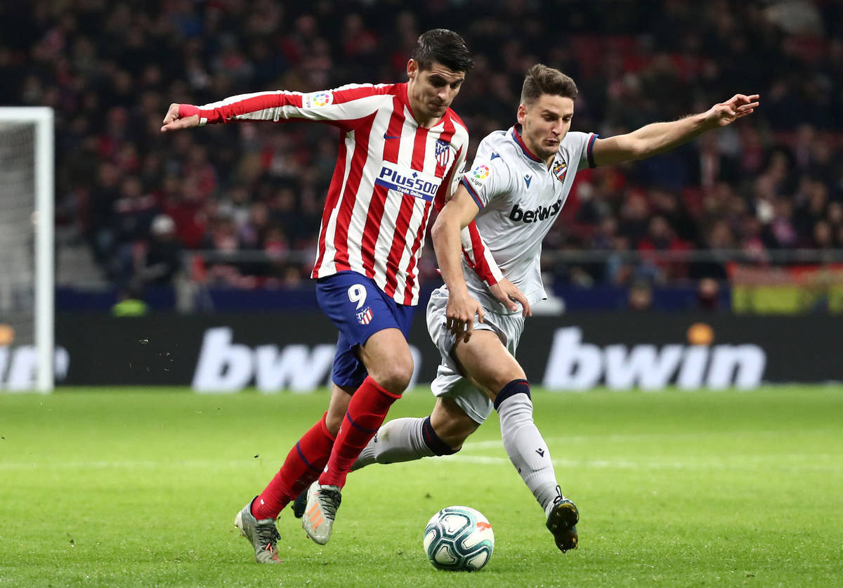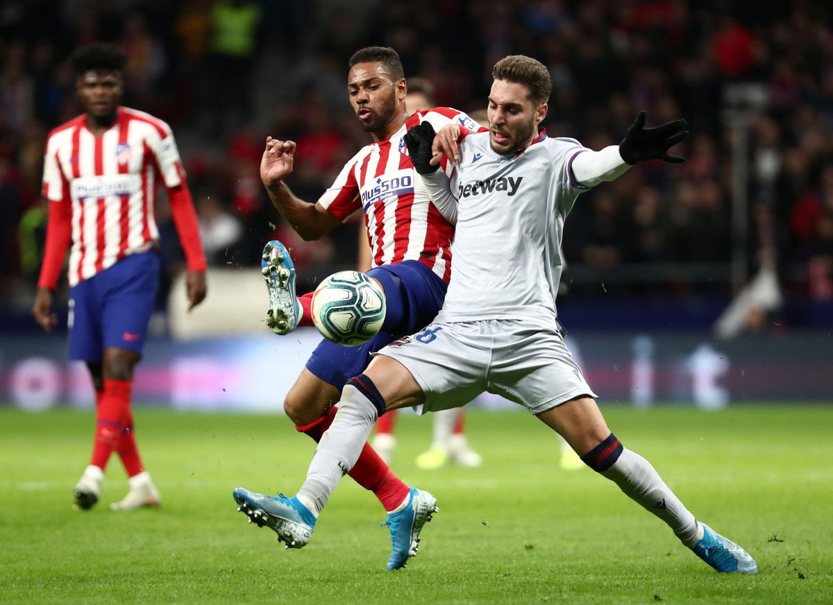Soccer Football - La Liga Santander - Atletico Madrid v Levante - Wanda Metropolitano, Madrid, Spain - January 4, 2020 Atletico Madrid's Alvaro Morata in action with Levante's Nemanja Radoja REUTERS/Sergio PerezSoccer Football - La Liga Santander - Atletico Madrid v Levante - Wanda Metropolitano, Madrid, Spain - January 4, 2020 Atletico Madrid's Felipe scores their second goal REUTERS/Sergio PerezSoccer Football - La Liga Santander - Atletico Madrid v Levante - Wanda Metropolitano, Madrid, Spain - January 4, 2020 Atletico Madrid's Renan Lodi in action with Levante's Ruben Rochina REUTERS/Sergio Perez