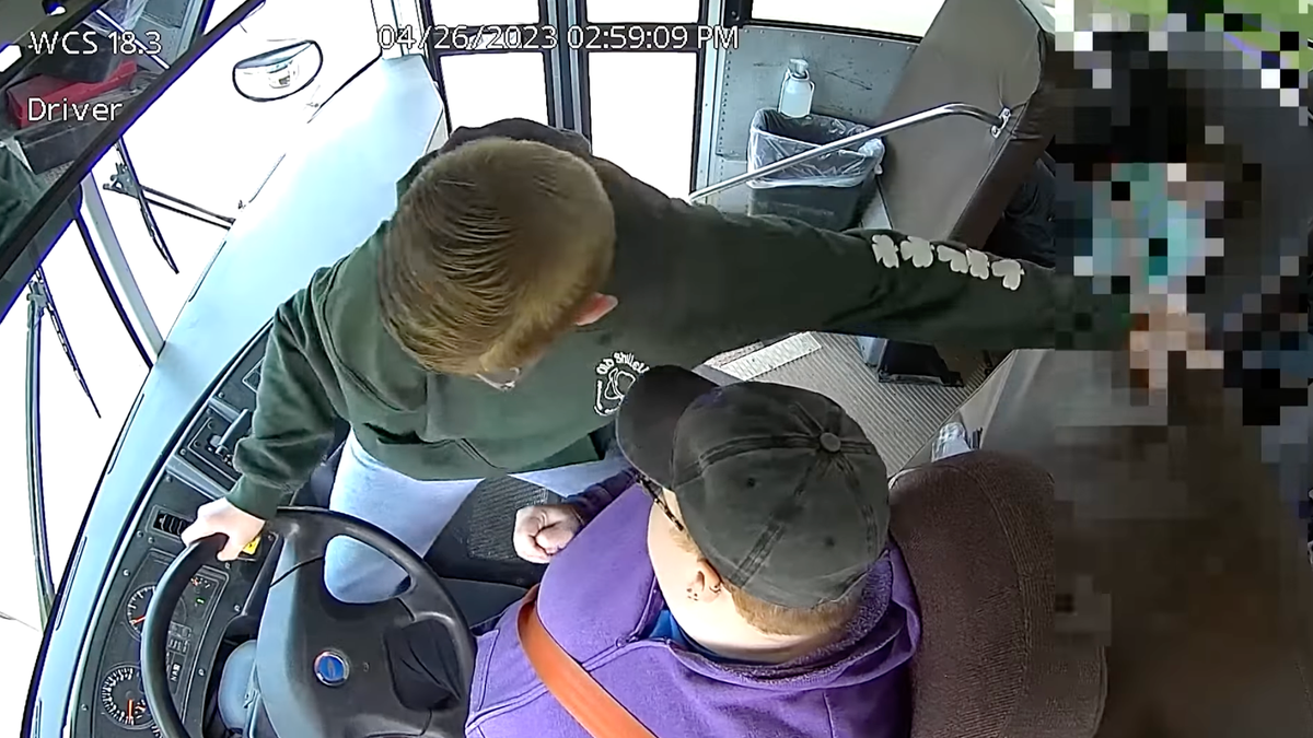 The seventh-grade boy sitting approximately five rows behind the driver noticed the incident and ran to the front of the bus and brought it to a stop.
