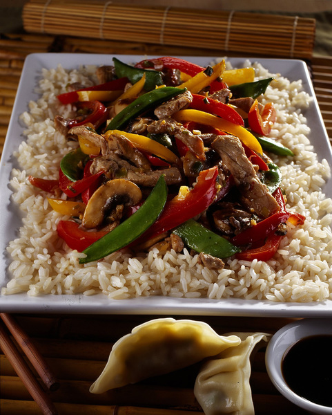 There's not much that's easier to whip up at home than a stir-fry. Match this one, rich with pork and vegetables, to a variety of wines; below, we have options both white and red. Each plays up different qualities of the dish _ do you love mushrooms? In it for the pork? Want to tone down the heat? Choose accordingly, and enjoy.