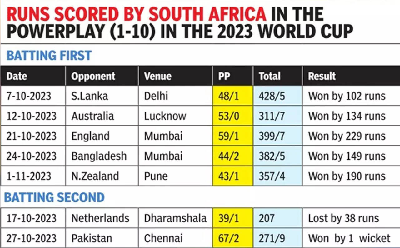 It is a different matter that the match-up didn't work at the other end as South African captain Temba Bavuma scored boundaries at will against right-arm seamer Matt Henry. Still, it contributed to the slowest start yet by South Africa in this World Cup. De Kock then edged Tim Southee, brought on for Henry, while attempting a half-hearted uppish cut when on 12 in the 10th over. But Glenn Phillips failed to hold on to the flier at point.