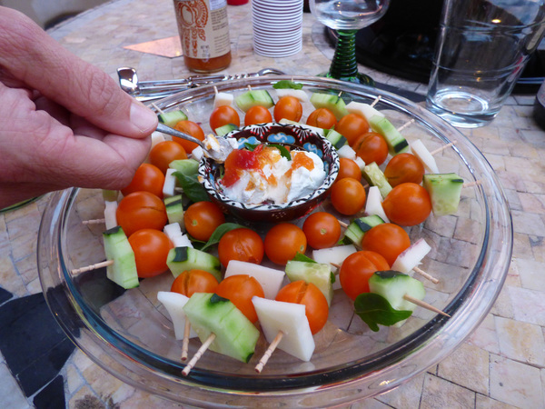 We invited guests to the courtyard on our first of two nights at Caravan. Four young women showed up for a tiny cocktail party. We drank out of tiny red Solo cups and dined on hors d'oeuvres served on toothpicks.