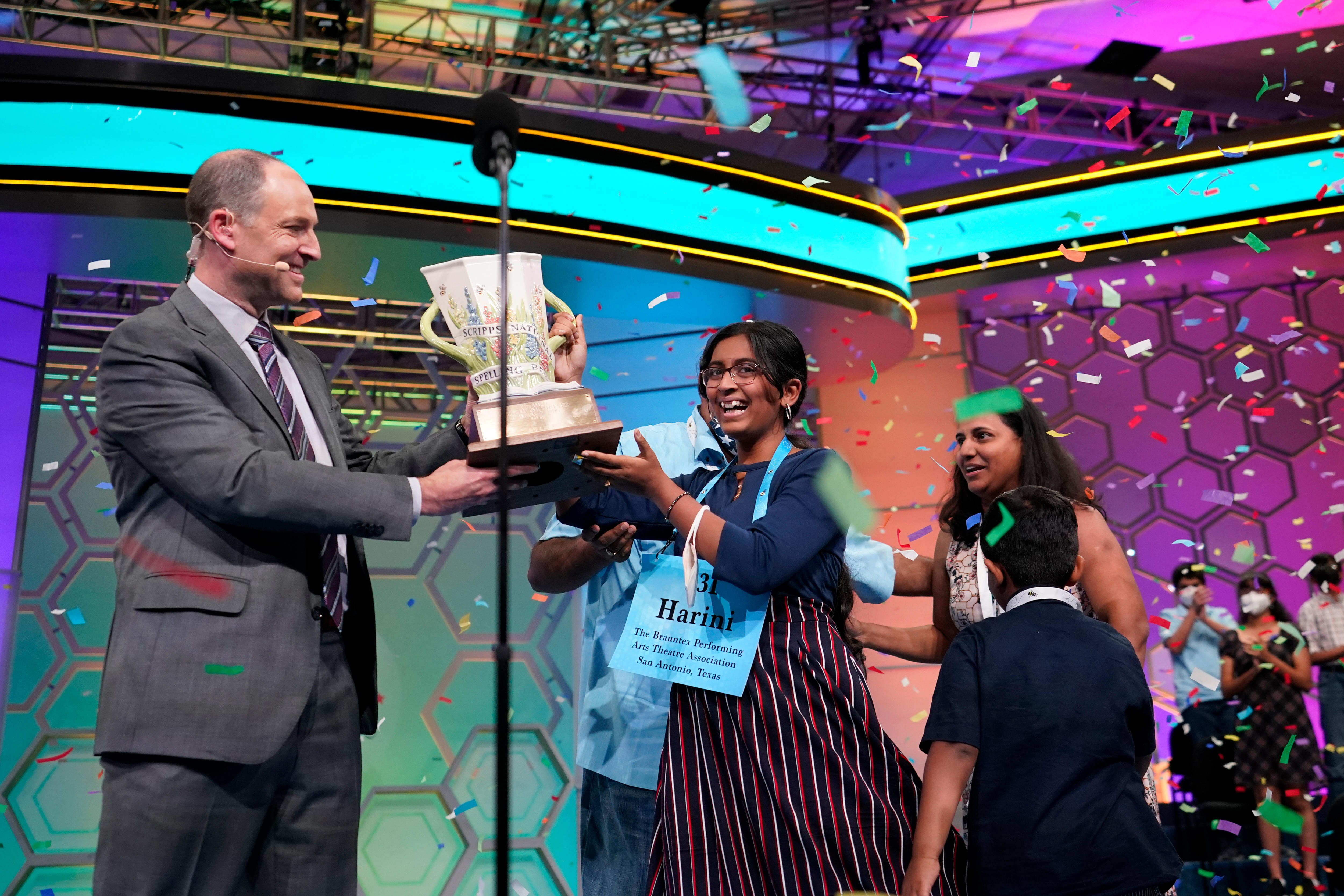 Harini Logan, a 14-year-old from San Antonio, Texas, beat Vikram Raju, a 12-year-old from Denver, Colorado, after she managed to spell 21 words correctly in 90 seconds, compared to 15 from Vikram.