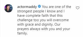 In her official statement post, Madhavan commented by saying, ‘You are one of the strongest people I know and I have complete faith that this challenge too you will overcome with grace and dignity. Our prayers always with you and your family’
