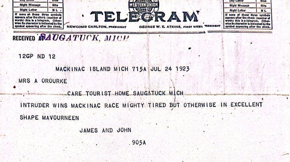 The 1923 race attracted 17 yachts, including the Intruder — John O’Rourke’s boat. The comparatively small vessel was seen as a longshot to win, but its size proved beneficial in that year’s weather.