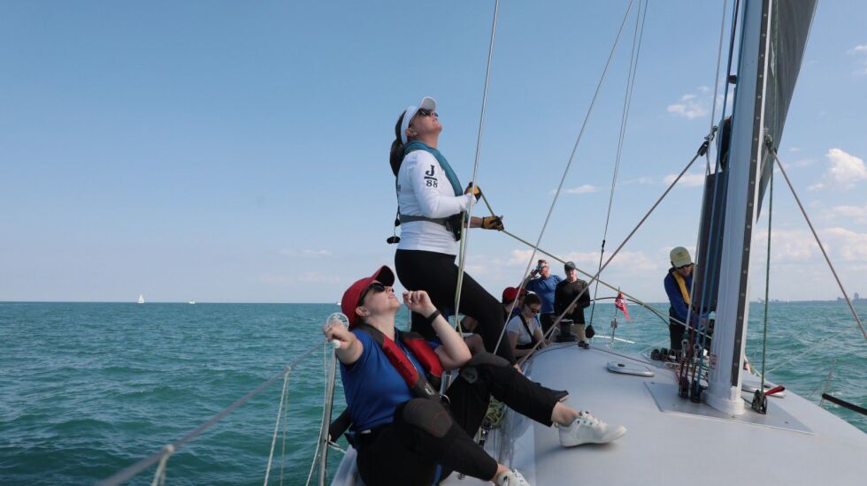 Christina O’Rourke was perched on the bow of a 46-foot sailboat called Skye on a sunny July afternoon as the vessel glided past the breakwalls into Lake Michigan’s open water.