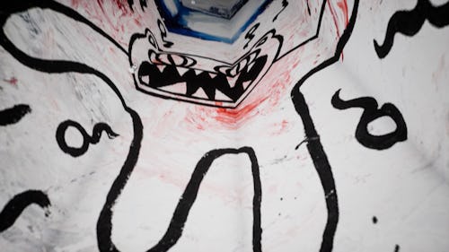 For something that can be experienced in about an hour, Kid A Mnesia: Exhibition is absolutely jam packed with astounding artwork and spaces poached from nooks of the band’s unreleased catalogue, lyric sheets and bits of poetry from Kid A and Amnesiac, and artwork from Thom Yorke and Stanley Donwood. You’ll find yourself engorged enough in its world to sit through entire songs, as structures morph and evolve around you. Some rooms are filled with stick figures laboring away to keep the walls and windows of the exhibit clean, adding a strong metafictional element to the whole space. Other rooms are essentially large-scale equalizers.