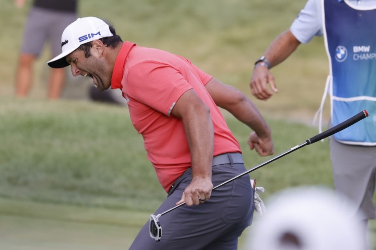 Rocketing up the leaderboard on Sunday, Rahm then drained the long putt in the first hole of a playoff against Johnson, letting out an elated roar.