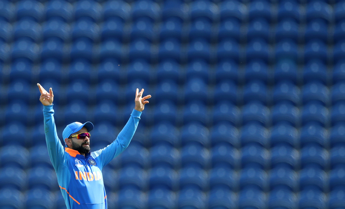 Cricket - ICC Cricket World Cup warm-up match - Bangladesh v India - Cardiff Wales Stadium, Cardiff, Britain - May 28, 2019 India's Virat Kohli reacts Action Images via Reuters/Peter Cziborra