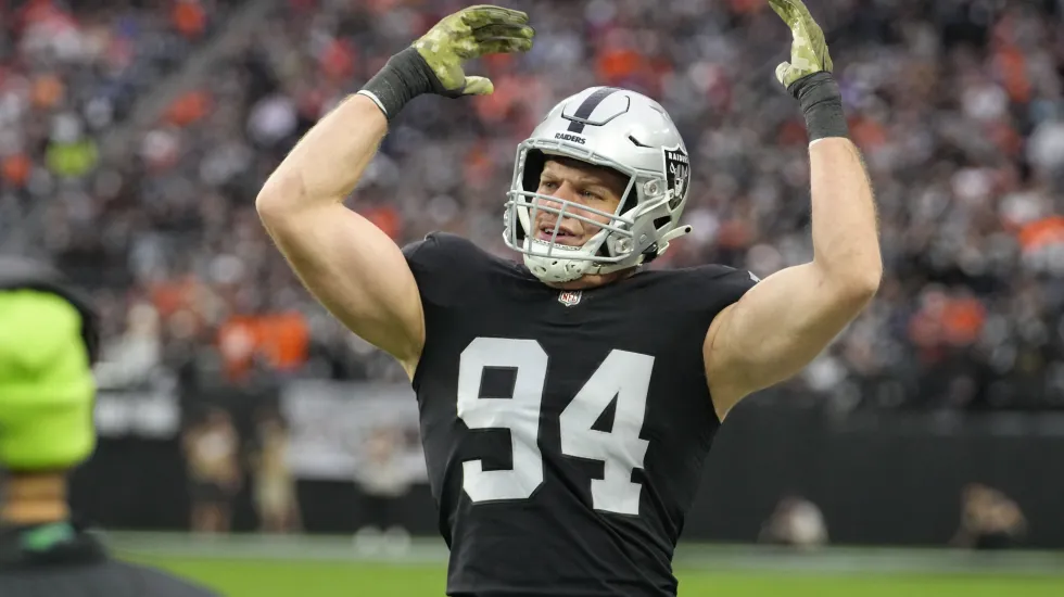 His best highlight on the field came in last season’s opener when his strip sack in overtime against Lamar Jackson set up the winning touchdown in the Raiders’ 33-27 win over Baltimore.