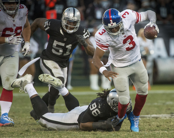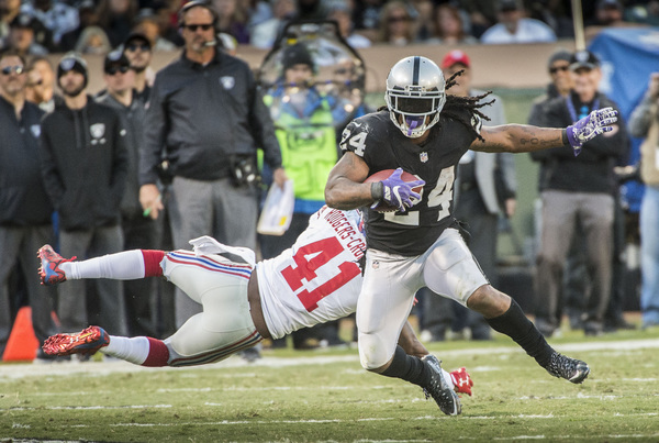 Marshawn Lynch reached his fifth-highest rushing total of the season in just three carries. He took the Raiders' first three plays from scrimmage 60 combined yards on the ground, the third 51 yards to the house to open the scoring. The Giants went three-and-out on their first three drives, and this one looked headed for a massacre. Yet the Raiders sat below .500 for a reason heading into Sunday, and they kept the visitors in the game far longer than they should've.
