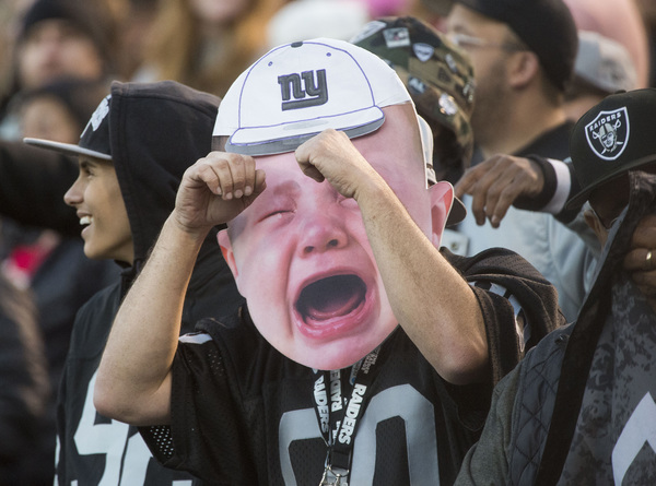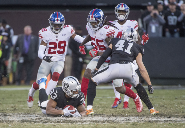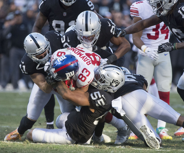 Whatever happened at the Coliseum on Sunday hardly resembled football for the majority of the afternoon, let alone football played by one team now tied for first place in its division. Yet that's exactly where the Raiders (6-6) sit after a 24-17 win over the Giants (2-10). It was ugly, but it's a win. And now, we get a Raiders-Chiefs tilt next Sunday in Kansas City, Mo., with both teams sitting at .500, neither those two teams nor the Chargers seemingly with any desire to run away with the division.